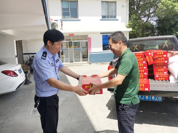 與此同時,集團總工程師江輝帶領工程部及收費所相關人員到院橋派出所和交警隊開展“送清涼”活動。江輝代表臺州高速集團對當地派出所和交警隊的履職盡責、通力協作表示衷心感謝,并叮囑他們在高溫天氣要做好防暑降溫工作。