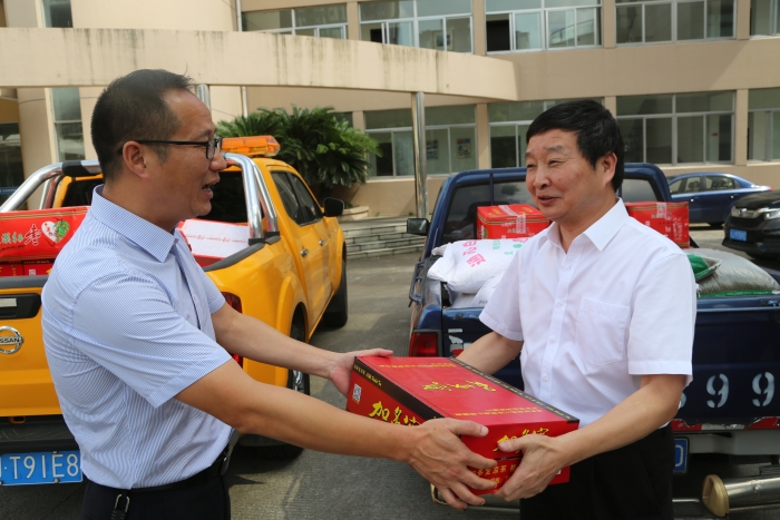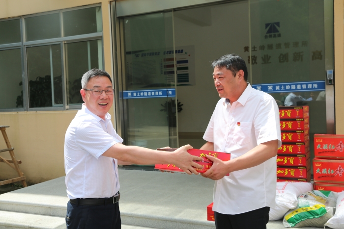 陳文波一行首先來到臺州高速公路交警總隊臺州支隊和高速路政的駐地,向他們送上了消暑物資,對他們一直以來有力維護高速公路秩序,保障本路段有序運營及高溫下堅守一線工作表示慰問和感謝,也請他們繼續支持公司工作,確保高速公路安全暢通。