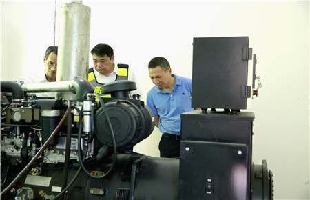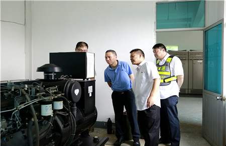 張建平察看了配電房,詳細了解工作職責,要求當班員工啟動發電機組看看保養工作是否到位,機電運行是否正常。