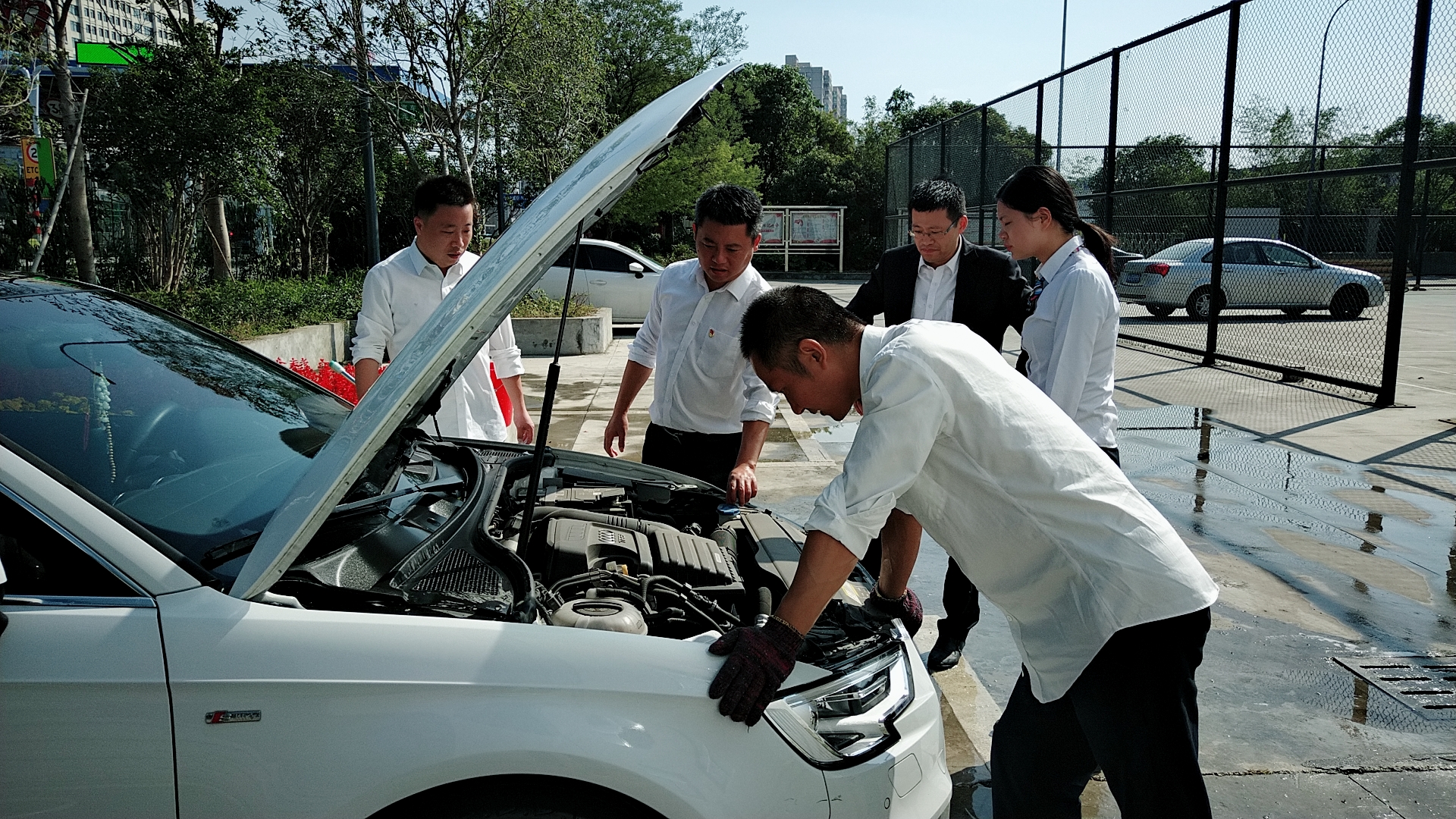 溫嶺西支部書記周超帶領黨員服務群眾 當天上午,活動一開始,前來洗車的車輛絡繹不絕。在支部書記周超的帶領下,五名黨員便開始分工合作。兩名男同志負責沖水、上泡沫、擦洗、再沖水,兩名女同志負責擦干和吸塵器清掃內室,還有一名男同志負責開車挪車,需要清洗的車輛一輛接著一輛,黨員同志們顧不得擦干身上的被水濺濕了的衣服,忙得不亦樂乎。看著被洗得一塵不染的車,大家都不約而同地會心一笑。